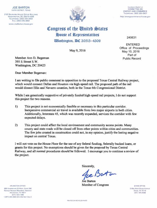 As promised, Texans Against High-Speed Rail filed its reply to Texas Central’s petition for “clarification” on Thursday, May 19th before the Surface Transportation Board. We want to thank Blake Beckham and Patrick McShan with The Beckham Group, and our Washington DC attorney Richard Streeter, who have spent countless hours preparing this comprehensive filing.